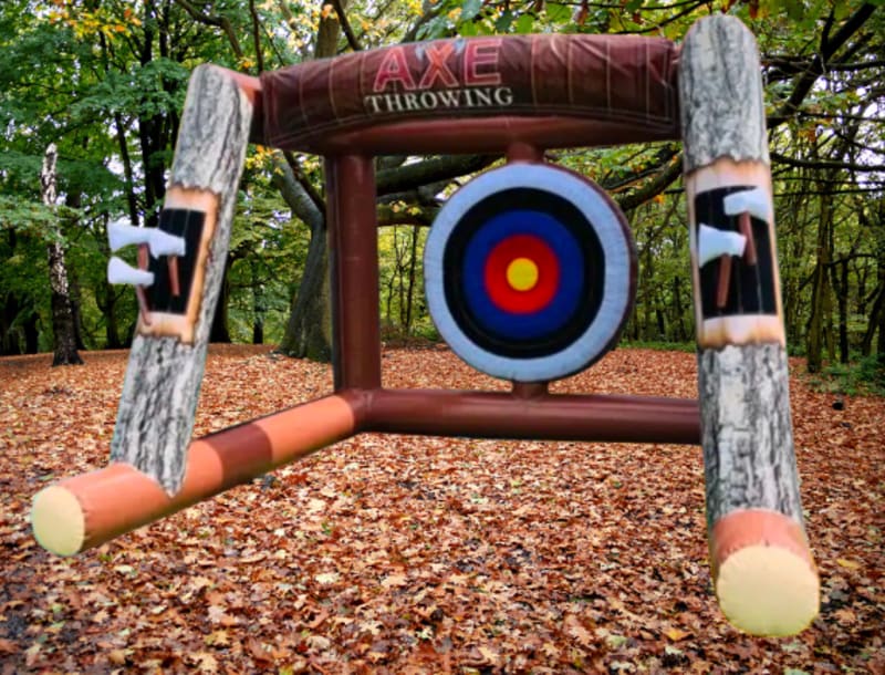 Step right up and test your lumberjack skills with our Inflatable Axe Throwing Game! This exciting and safe attraction brings all the thrill of axe throwing without the danger of real axes. Players take aim with soft, foam 'axes' and try to hit the Velcro target on a large, vibrant inflatable backdrop. Perfect for parties, events, and team building, this game provides hours of competitive fun for all ages.